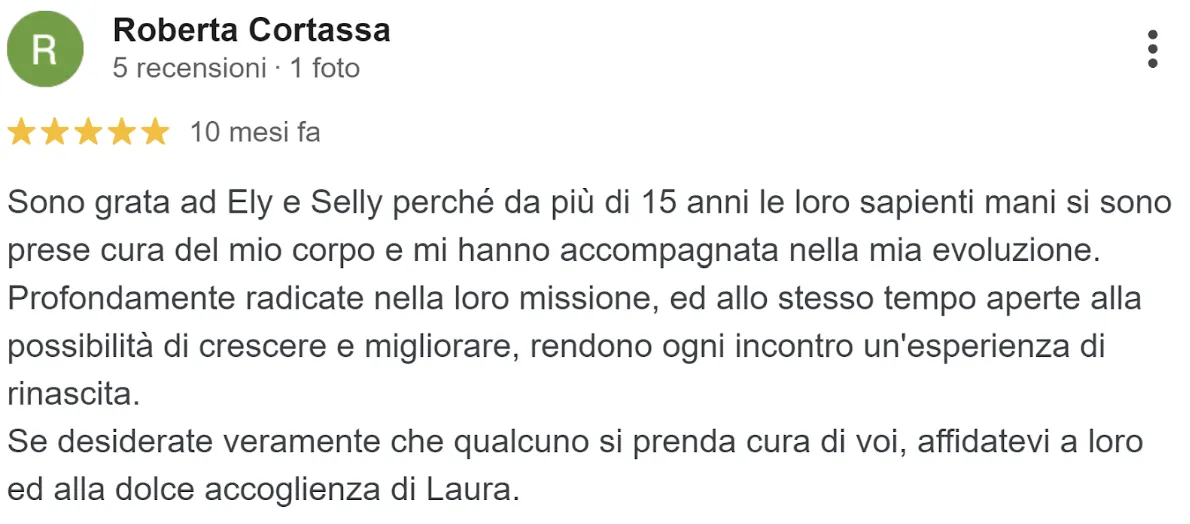 “Sono grata ad Ely e Selly perché da più di 15 anni le loro sapienti mani si sono prese cura del mio corpo e mi hanno accompagnata nella mia evoluzione”