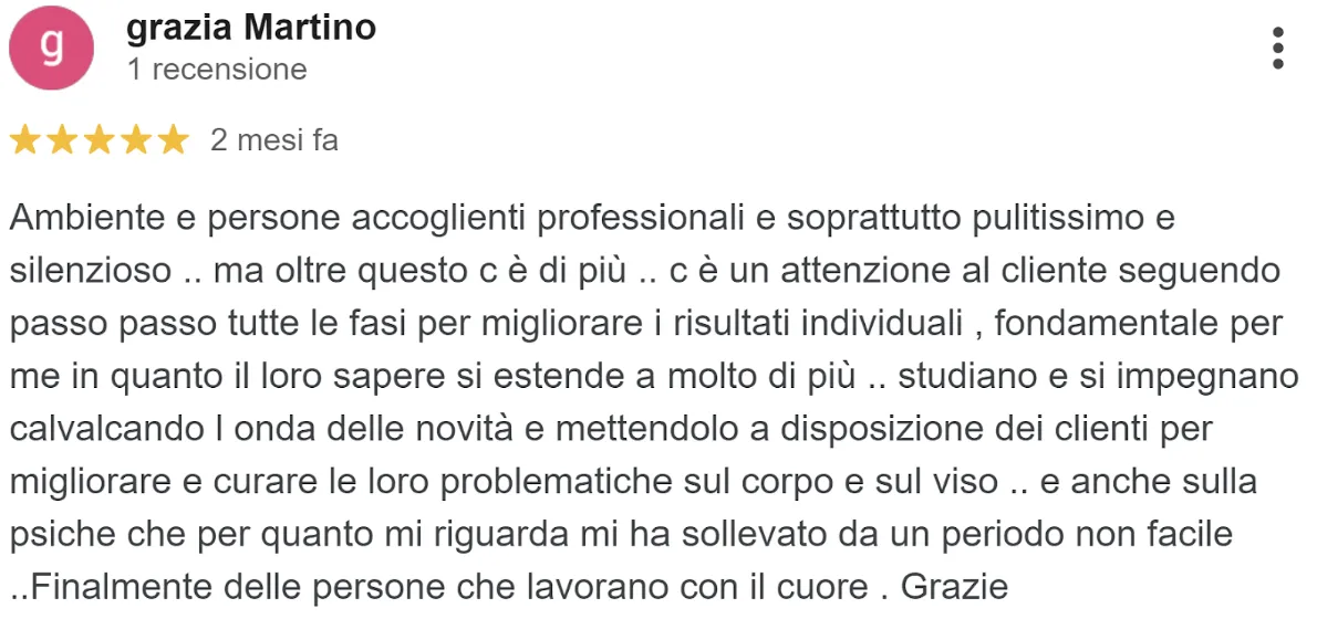 “Ogni volta è un’esperienza rigenerante… senza trascurare gli ottimi risultati che sto ottenendo dai loro trattamenti”